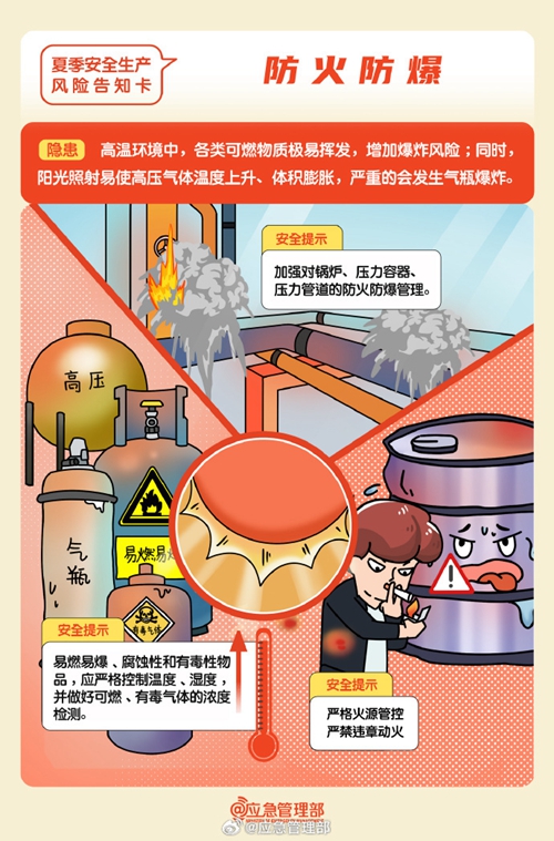 高溫天氣下安全生產(chǎn)工作要關(guān)注哪些風(fēng)險隱患?如何防范?這組風(fēng)險告知卡請查收↓↓↓