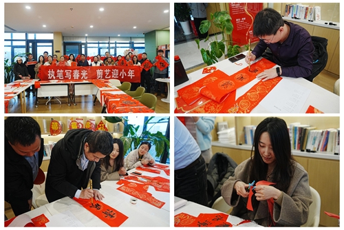 城發(fā)·金岱智慧產(chǎn)業(yè)園工會(huì)聯(lián)合會(huì)邀園區(qū)職工寫(xiě)春聯(lián)、剪窗花,在一紙紅箋、一剪朱霞之間,大家以手造物、以心傳情,為園區(qū)披上新春的盛裝。